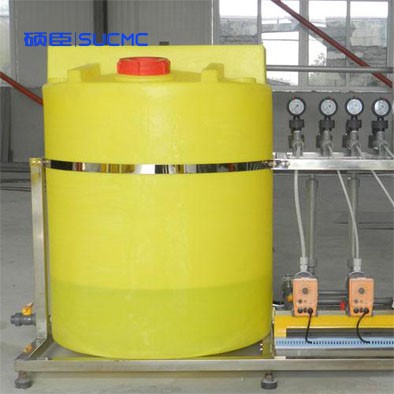 一般为一箱两泵一台电动搅拌器组成一整套系统,亦可根据用户要求,构成两箱两泵,两箱多泵,多箱多泵多种结构。可用于液液、固液、气液药剂溶液的配制、定量投加。